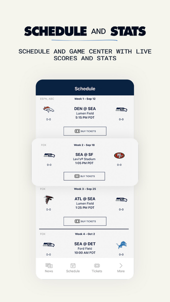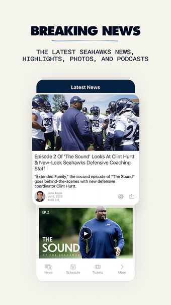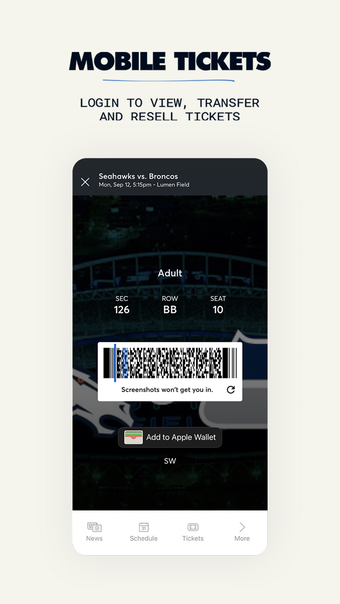 โปรดใช้แอปมือถืออย่างเป็นทางการของ ทีมฟุตบอลซีแอตเทิล ซีฮ็อกส์ เพื่อเชื่อมต่อตลอดทั้งปี ที่มีให้ใช้สำหรับ iPhone, iPod Touch, และ iPad คุณสามารถเข้าถึงข่าวสารล่าสุด สถิติแบบเรียลไทม์ ไฮไลต์วิดีโอ และอื่นๆ ได้โดยแค่กดเพียงไม่กี่ครั้ง เฉพาะในการเข้าชมการแข่งขันหรือการรับชมจากที่บ้าน แอปยังมีคุณสมบัติที่เหมาะสำหรับการเล่นเกมของคุณในวันแข่งขันด้วย
